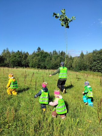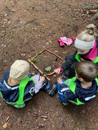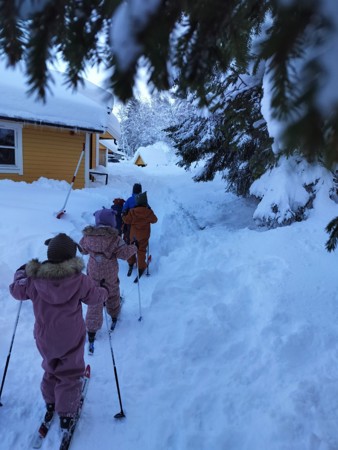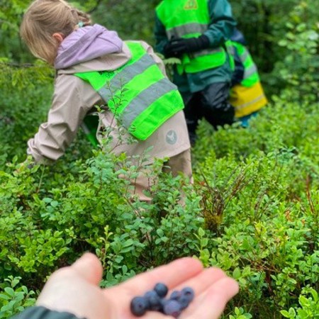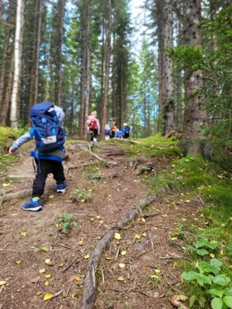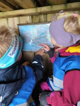 Vi har mange turmål som ligger i gåavstand til barnehagen, både for kortere og lengre turer. Ett sted vi bruker mye er Elgskogen, det ligger rett nedfor barnehagen. Der har vi en gapahuk, som gir oss et godt utgangspunkt for en dag i skogen. Dette er et fint område som barna får kjennskap til når de går på småbarn, og som følger de som et flittig brukt turmål resten av barnehagelivet.
