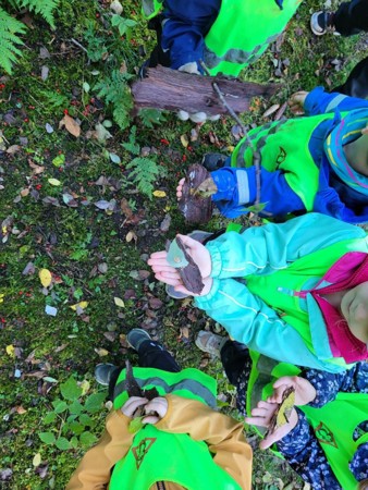 Leirfivelen har faste turdager i løpet av uka, og ut i året har også Hestehoven det. Vi tar også spontane turer så ofte vi har muligheten. Vi ser på nærområdet vårt som en viktig ressurs i det pedagogiske arbeidet vårt.